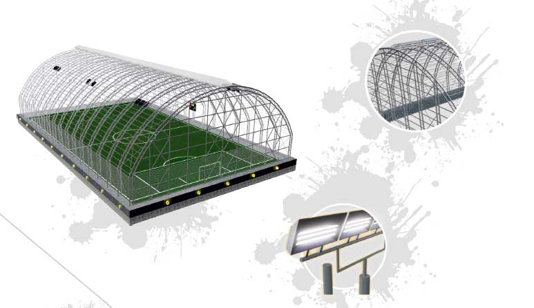 • Les côtés du terrain de football seront clôturés avec un clôture en grillage en PVC galvanisé.